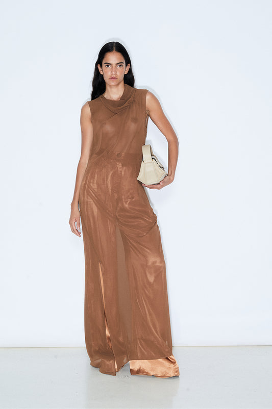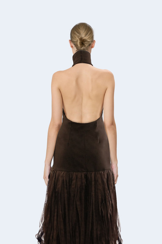 Brown Halter Dress With Silk Fringes