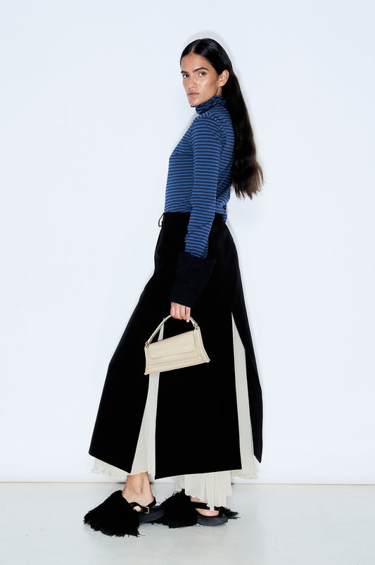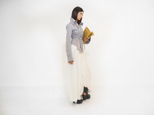 Blue Silk And Cotton Gathers Skirt