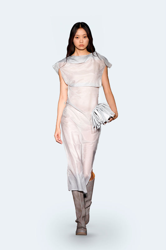 Grey Silk And Cotton Asymmetrical Dress