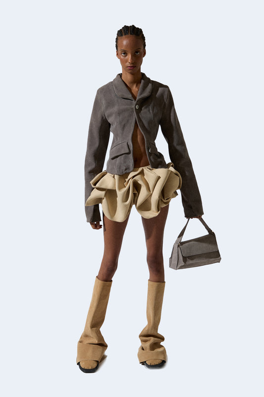Beige Semi-Satin Volume Miniskirt
