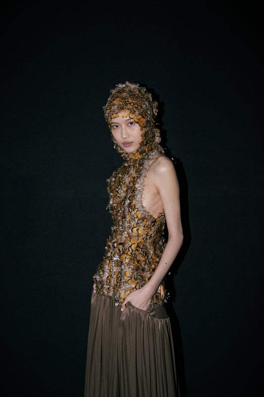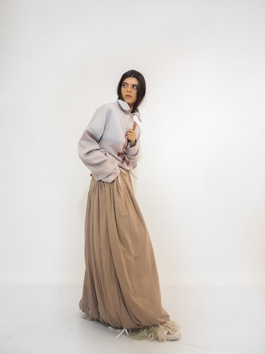 Brown Satin Volume Long Skirt
