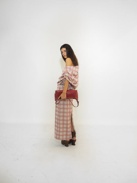 Plaid Satin Volume Long Dress / Preorder