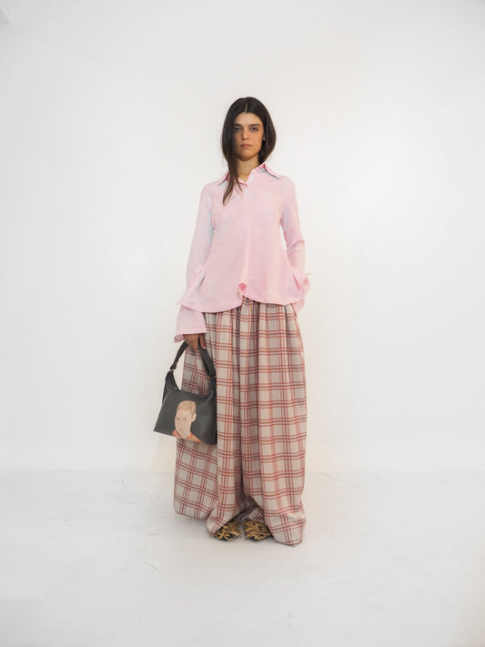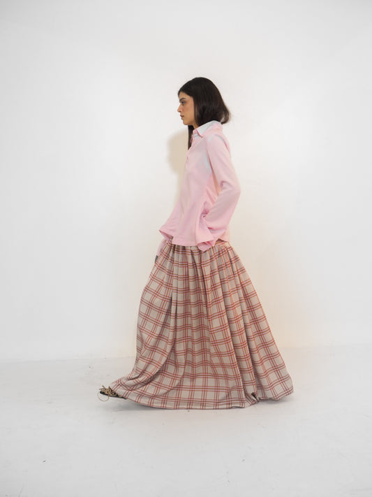 Plaid Satin Volume Long Skirt / Preorder