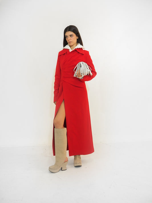 Red Crepe Straight Coat