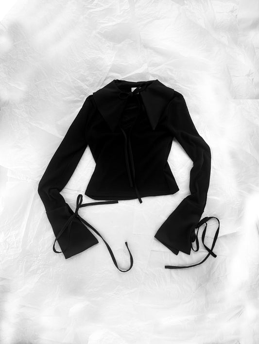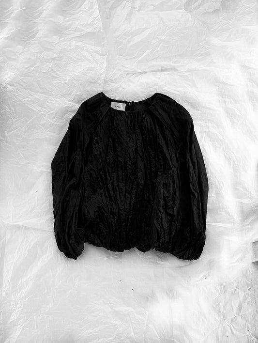 Black Semisatin Black Balloon Blouse