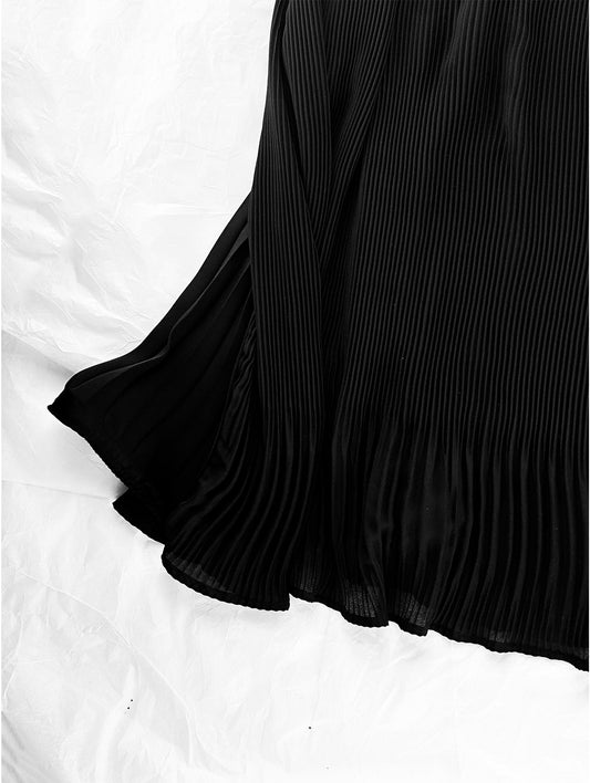 Black Pleated Midi Skirt