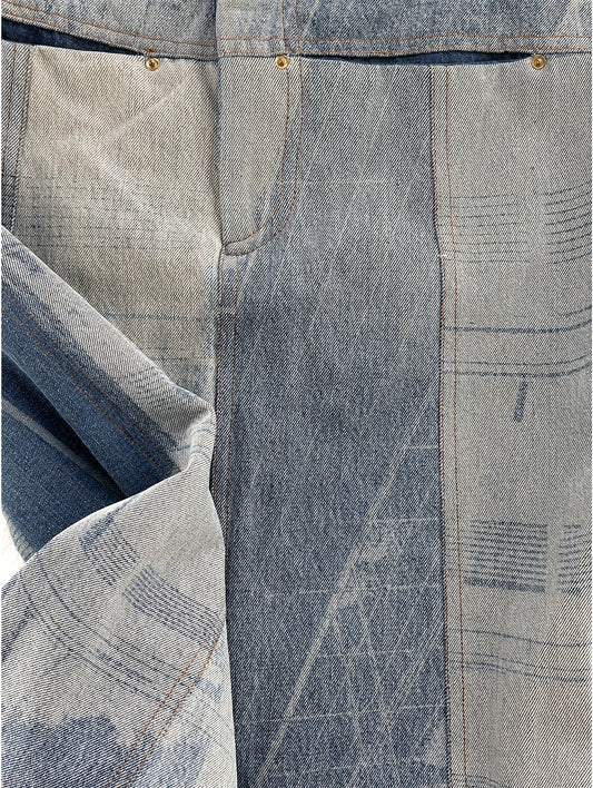 Soft Blue Denim Print Long Skirt
