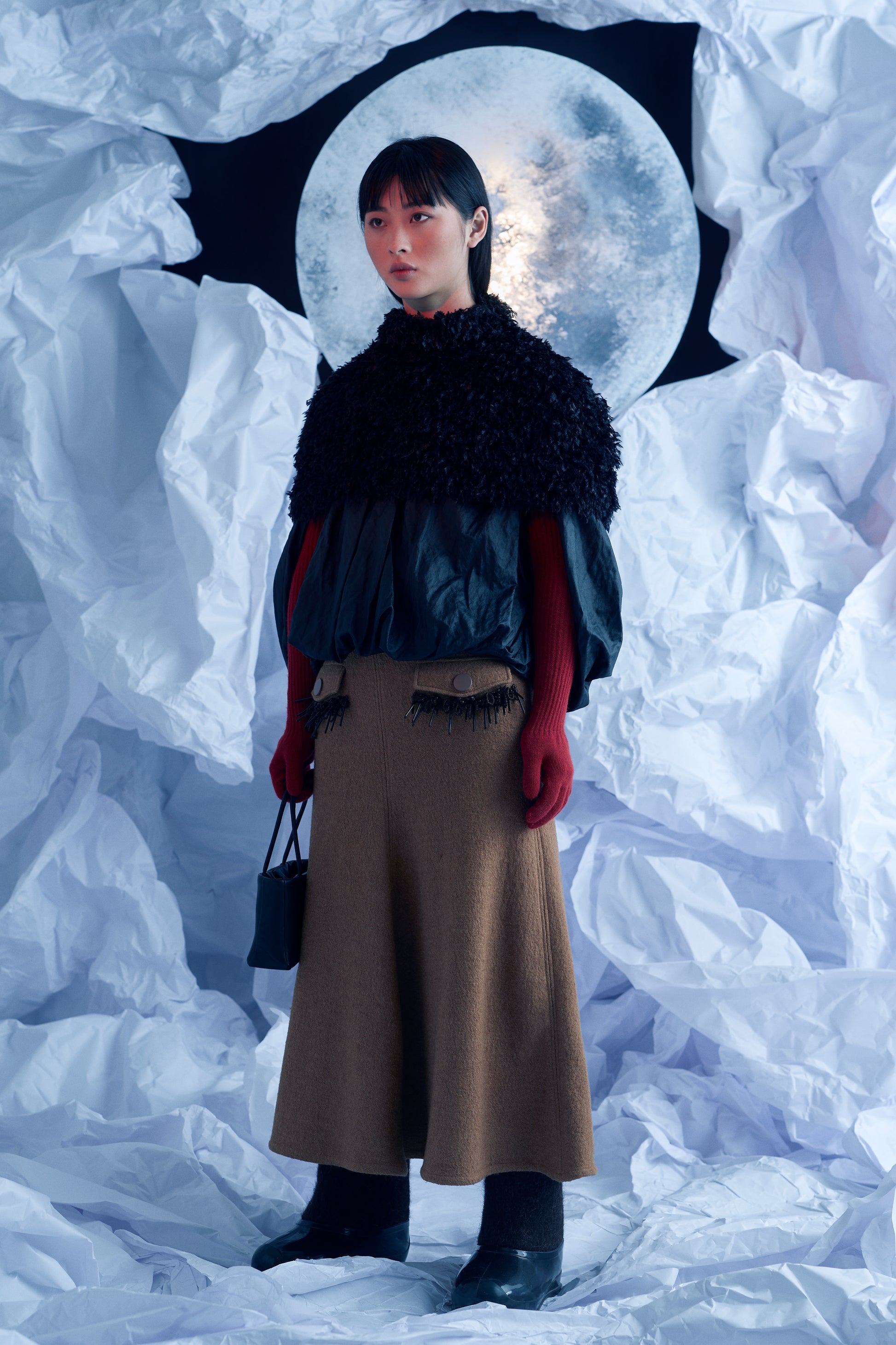 Black Semisatin Black Balloon Blouse