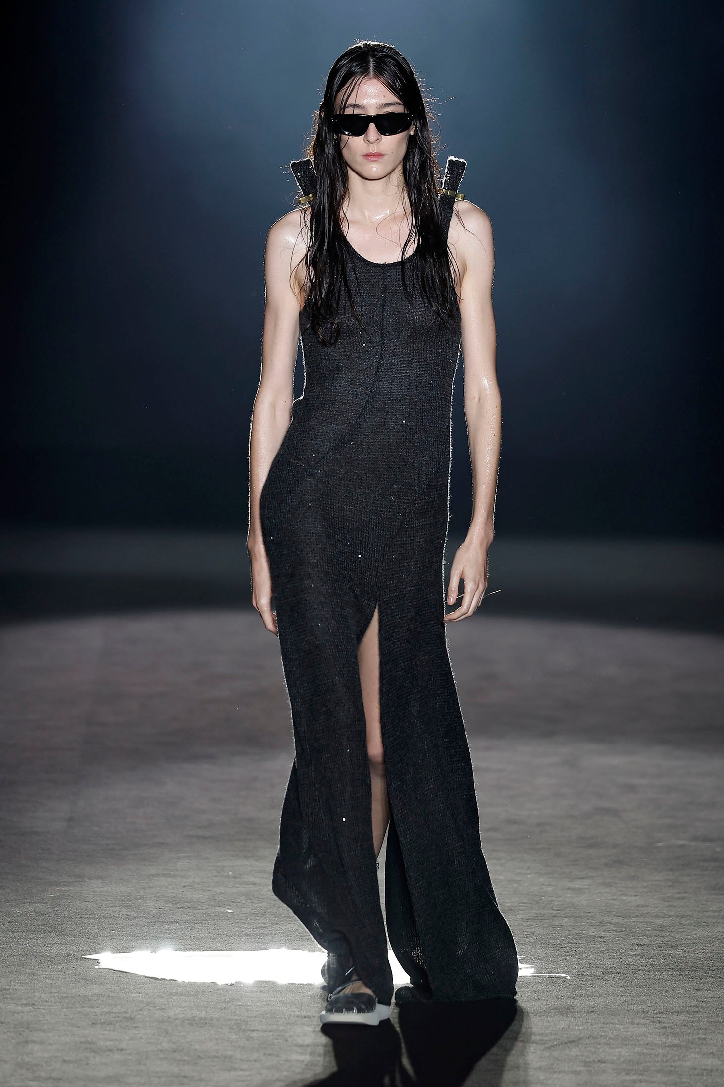 Vestido punto negro. Lentejuelas. Con broche. Hecho en España.